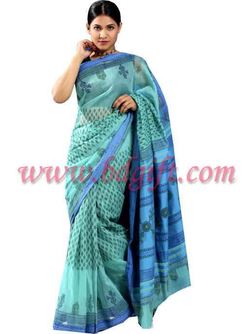 Beautiful half silk sharee. Exclusive Collection of a Brand name Fashion house with Block Print. Matching blouse will be included with the sharee. Its new colection for women. Just order this for your dear wife on special day. Its new product for women. Gift this to your dear wife in different way.