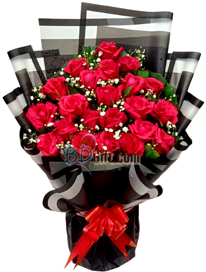 24 red roses in bouquet beautifully arranged to express your love, passion, and affection in Bangladesh.