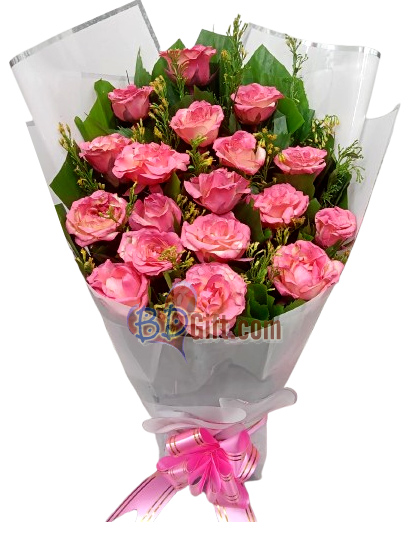A graceful bouquet of 18 fresh pink roses, symbolizing admiration, gratitude, and sweet affection.