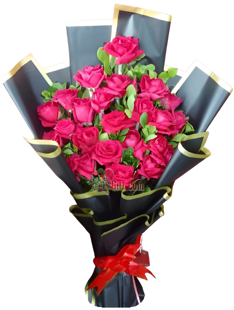 Express your deepest love and admiration with this stunning bouquet of 24 fresh red roses, beautifully wrapped and tied with a matching ribbon. Each rose is handpicked to ensure premium quality, freshness, and fragrance — a perfect way to say “I love you”, “Happy Birthday”, or “I miss you.”
