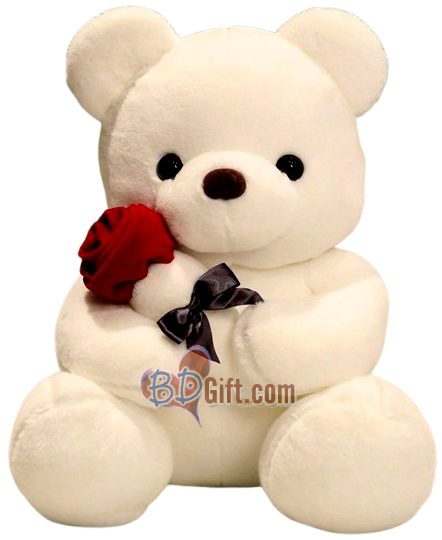 Send a soft and adorable 10 to 12 inch milk white teddy bear holding a charming artificial rose to your loved one in Bangladesh. This cuddly bear is a sweet symbol of love and care, perfect for birthdays, anniversaries, Valentine’s Day, or any special occasion.