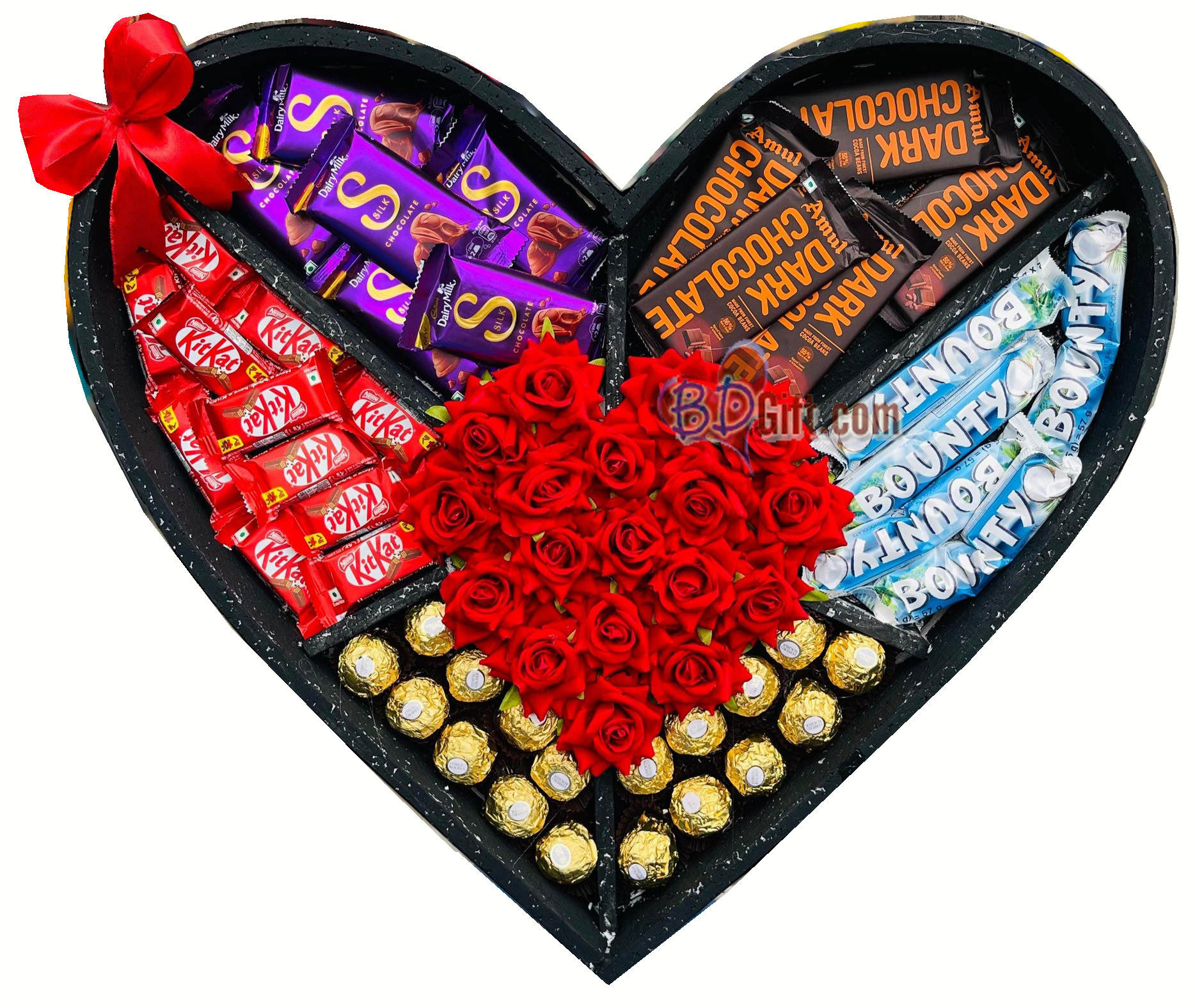 Delight your loved one in Bangladesh with this luxurious chocolate and rose gift set — a perfect expression of love and sweetness for any occasion. This exclusive arrangement includes:-