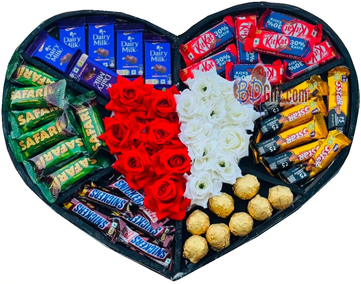 Make your loved one feel extra special with this luxurious heart-shaped gift box filled with a delightful mix of premium chocolates and elegant artificial roses. Perfect for birthdays, anniversaries, Valentine’s Day, or any celebration in Bangladesh.