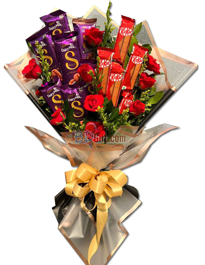 This charming gift is perfect for Valentine’s Day, anniversaries, birthdays, or romantic surprises. The rich taste of Dairy Milk Silk and KitKat combined with fresh red roses creates the ultimate symbol of affection.