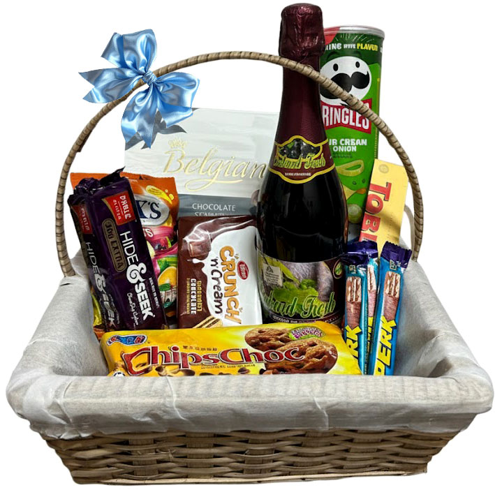 This luxury snack, chocolate, and juice basket is a perfect choice for premium gifting, featuring cookies 180 gm, Hide and Seek biscuits 100 gm, Tiffany Crunch ’n’ Cream wafers 135 gm, three Perk chocolates, Pringles chips 134 gm, Fox’s Crystal Clear Fruits candy pack 90 gm, Toblerone chocolate 100 gm, Belgian chocolate 200 gm, and a 750 ml non-alcoholic juice, beautifully arranged in a basket. Ideal for birthdays, New Year celebrations, corporate gifting, or special occasions, this thoughtfully curated combo delivers a rich mix of taste and elegance. Weights are approximate and may vary slightly by brand, and safe, hygienic delivery is available across Bangladesh.