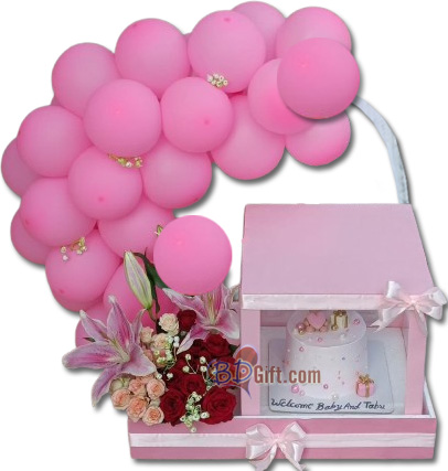 Delight your loved one with the soft charm of the Pink Dreams Balloon Hamper, a graceful combination of balloons, artificial flowers, and cake designed to create a beautiful and memorable surprise in Bangladesh.