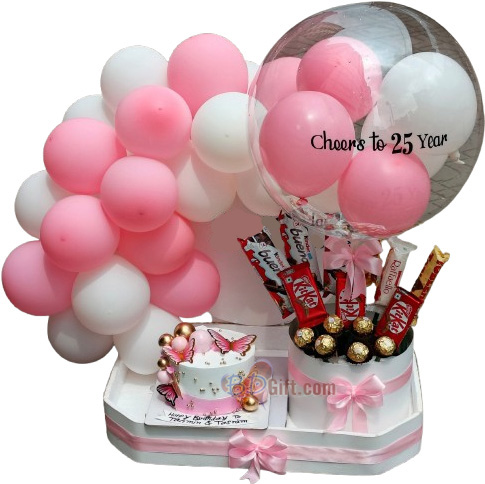 All items beautifully arranged in a round paper container finished with decorative ribbon