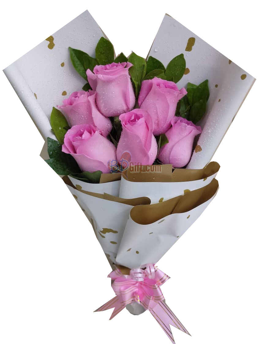 Express love and admiration with 6 pcs fresh pink imported roses, beautifully arranged to create a charming and graceful gift. Perfect for birthdays, anniversaries, romantic surprises, and special occasions, with reliable delivery anywhere in Bangladesh.