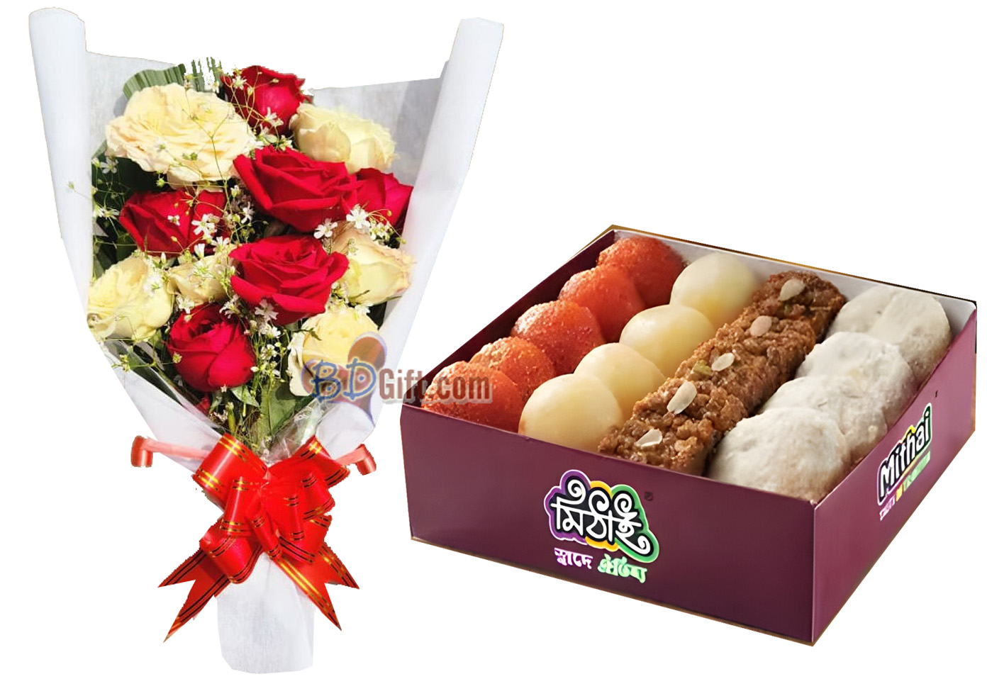(001) 12 Roses & Mithai Sweet Box