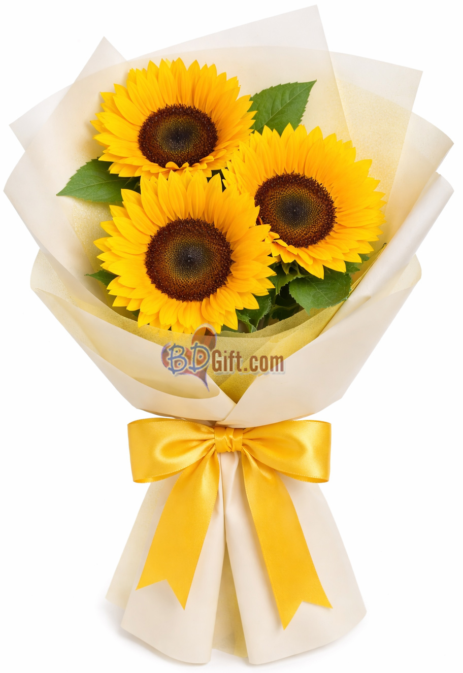 Brighten their day with our elegant Sunflower Trio Bouquet. Featuring 3 fresh, vibrant sunflowers, this cheerful arrangement is the perfect gesture to share your love. Expertly arranged and available for reliable delivery.