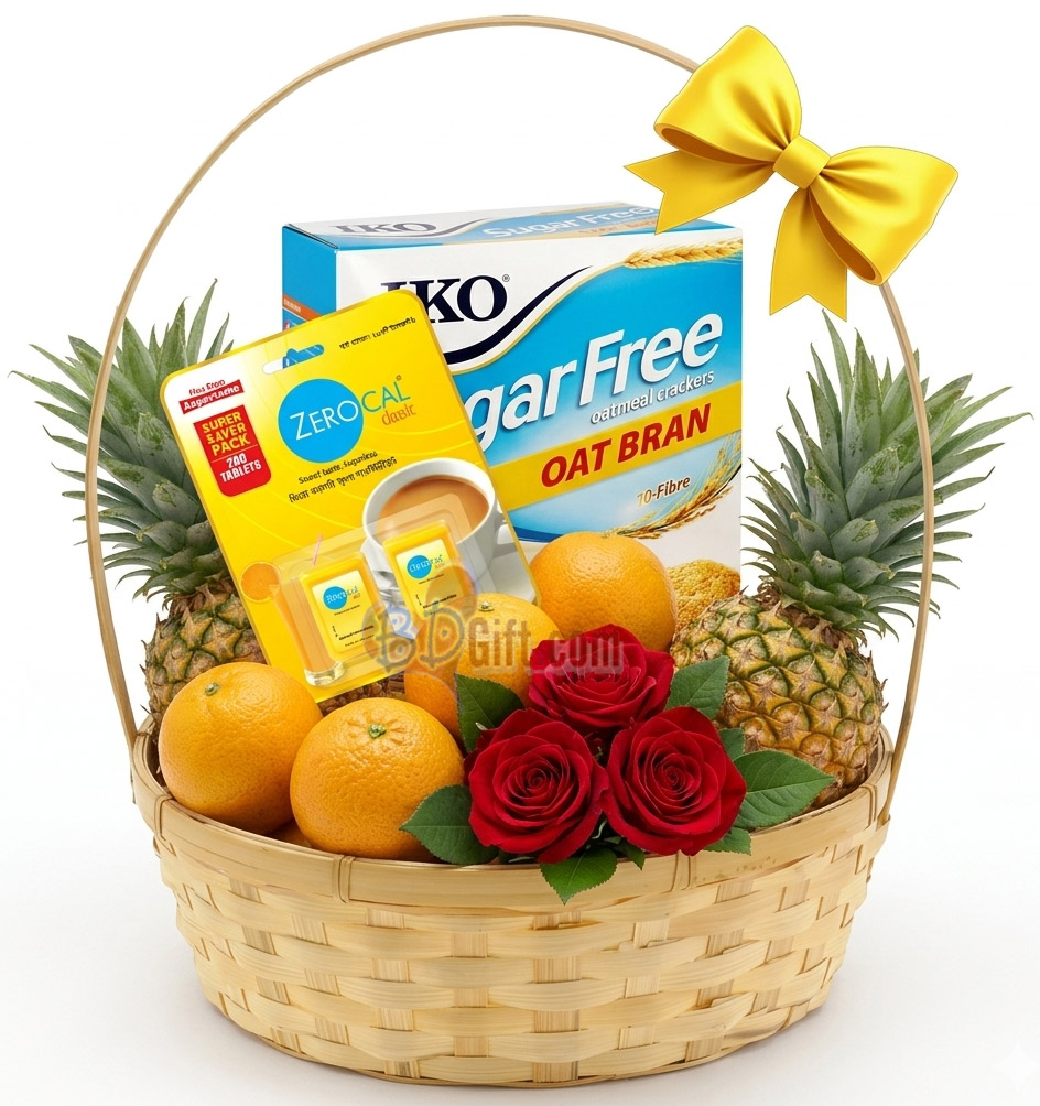A perfect combination of healthy snacks, fresh fruits, and a touch of love—ideal for mothers who need sugar-controlled options while still enjoying delicious treats.