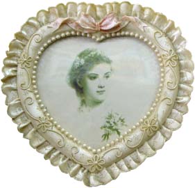 Heart shape photo frame decorated with pink ribbon. Size: 5 X 5 Inch.