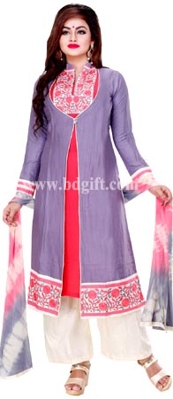 Exclusive Lilen Salwar Kameez. Exclusive collection of Brand name fashion house with exclusive design in front of the Kameez with matching Orna & Salwar.