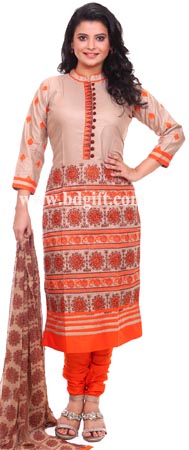 Cotton Salwar Kameez. Exclusive collection of Brand name fashion house with exclusive design in front of the Kameez with matching Orna & Salwar.
