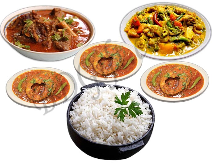 (21) Steamed Rice W/ Fish ,Vegetable & Mutton Kalia for 3 person