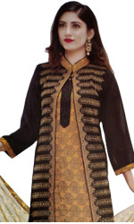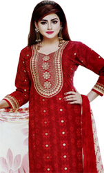 Jorjet & Silk combination Salwar Kameez set. Exclusive collection of Brand name fashion house with exclusive design in front of the Kameez with matching Orna & Salwar.