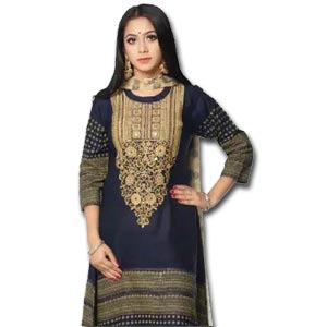Exclusive Lilen Salwar Kameez. Exclusive collection of Brand name fashion house with exclusive design in front of the Kameez with matching Orna & Salwar.